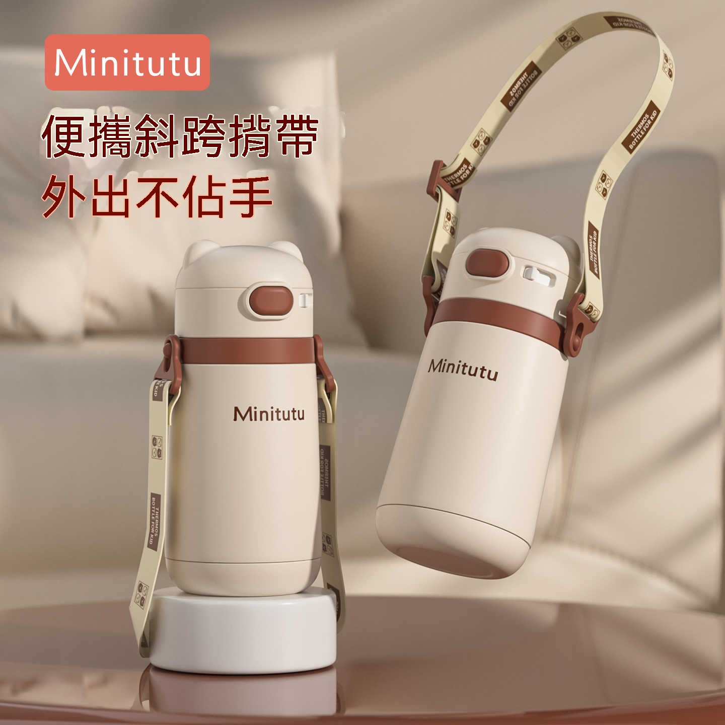 「媽媽,這個杯杯是我的小包包!」——讓寶貝愛上喝水的斜揹保溫杯,自己揹著走、不喊累!