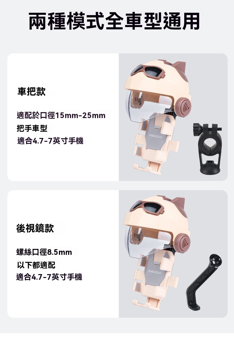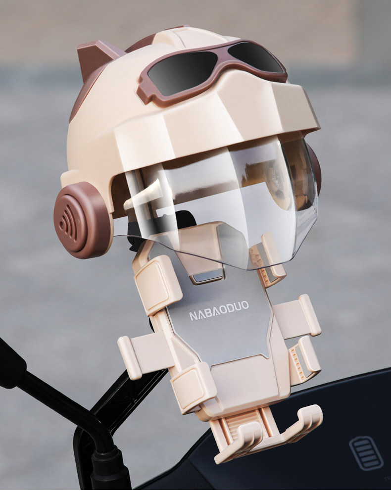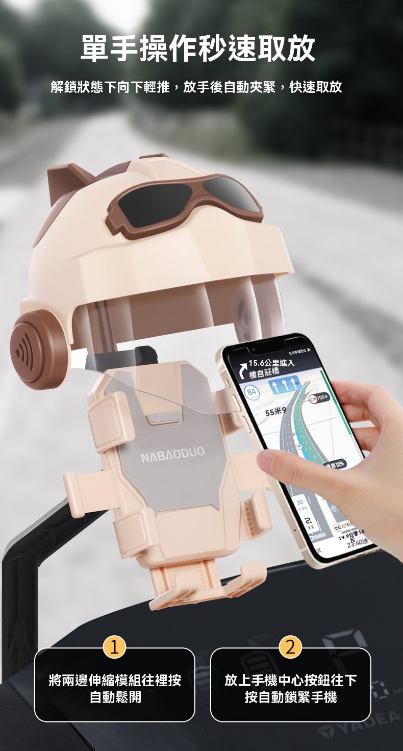 【騎士導航小頭盔支架】防震防水遮陽三合一・鏡面可翻・你的機車手機最萌安全帽