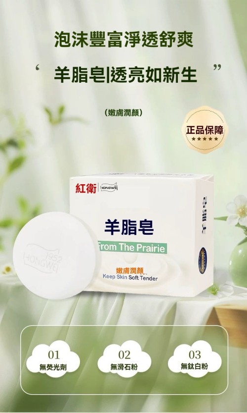 紅衛雙面羊脂皂120g 嫩膚潤顏 雙色雙效 經典國貨品牌用心製皂 泡沫綿柔一皂多用 官方正品