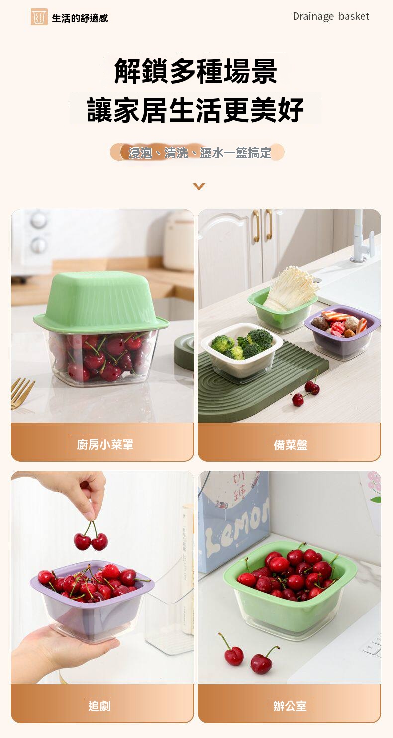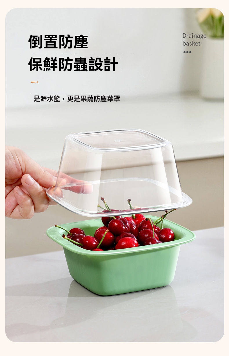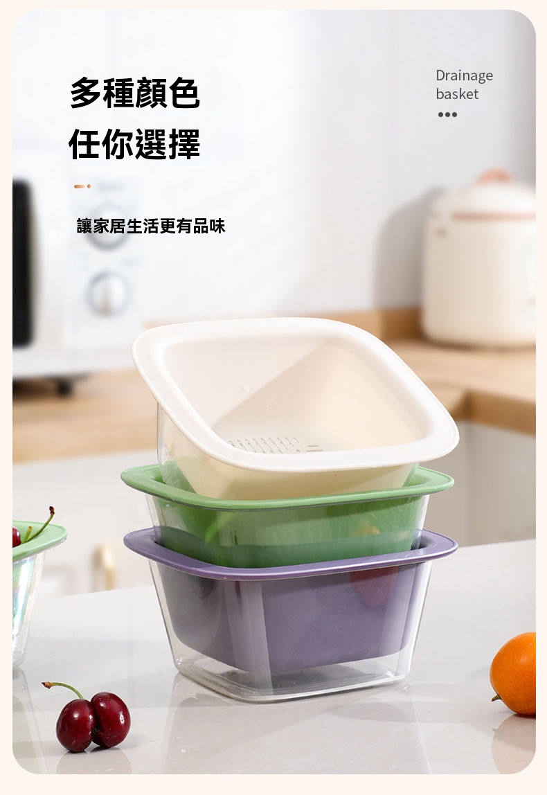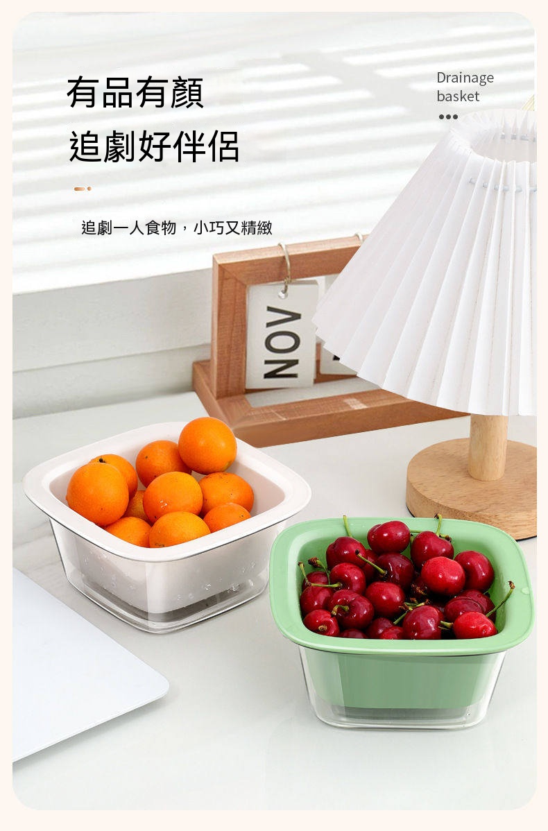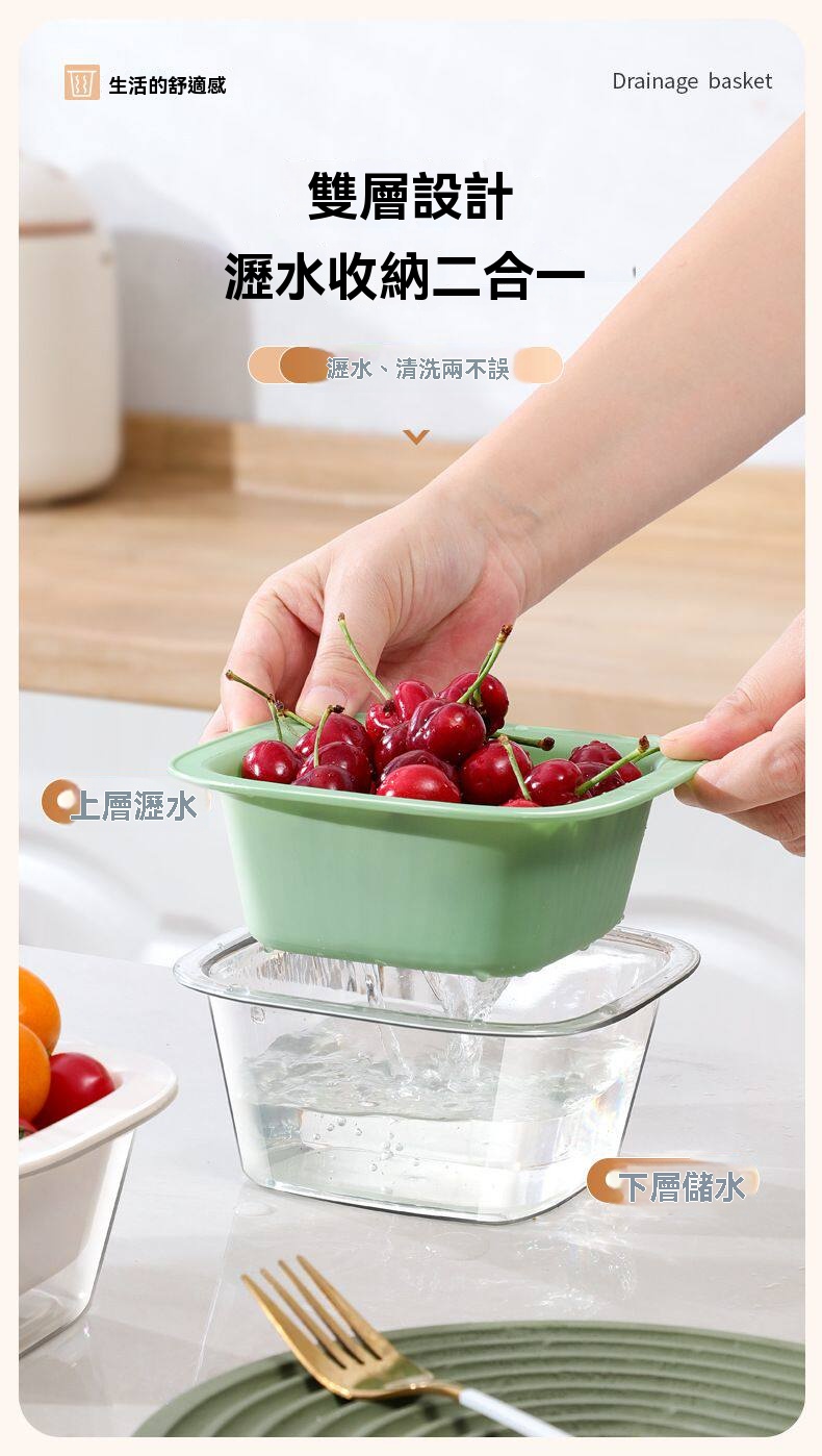厭倦了水槽裡濕答答的水果?這組「雙層瀝水收納籃」讓蔬果洗晾收一次優雅完成!
