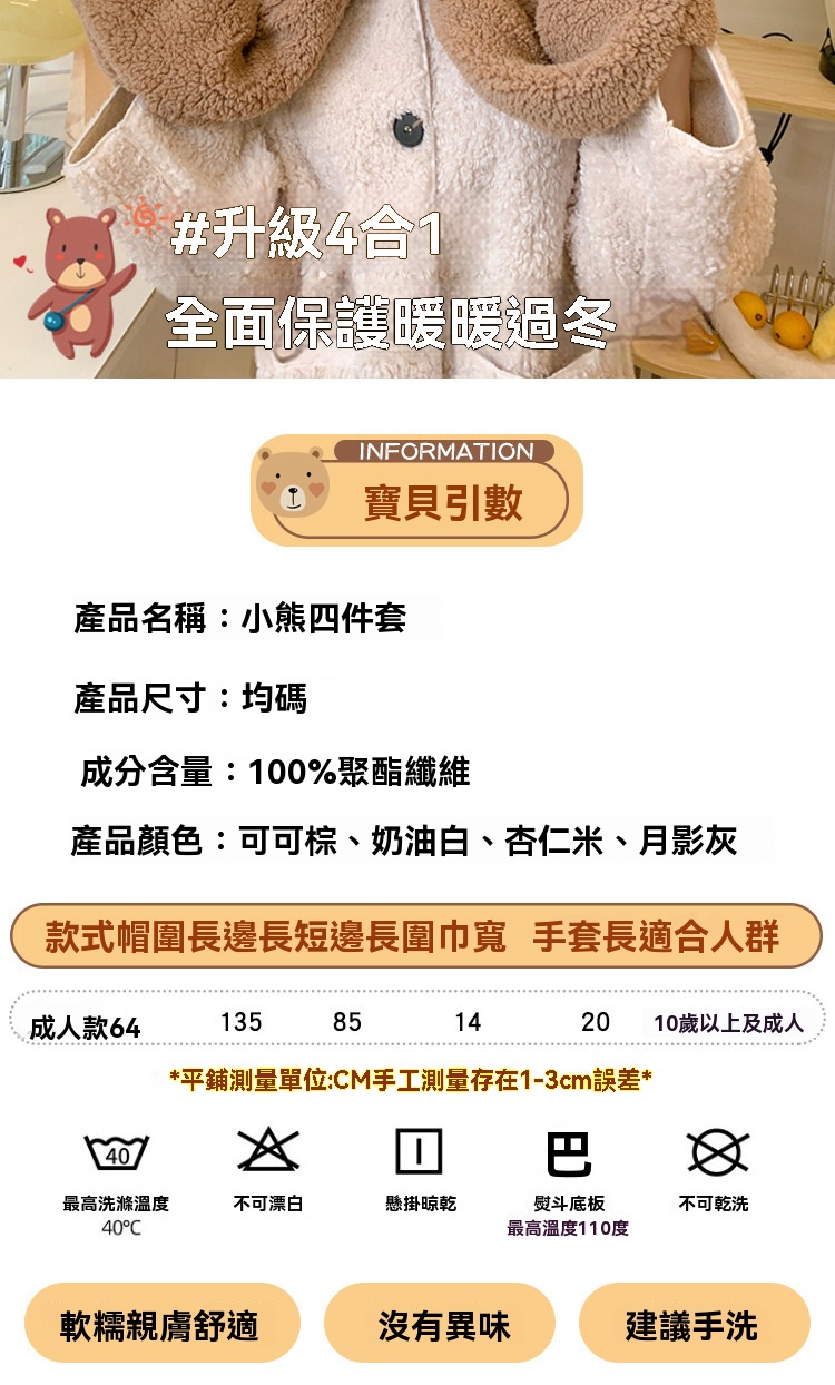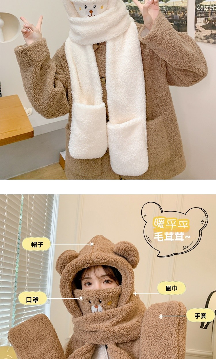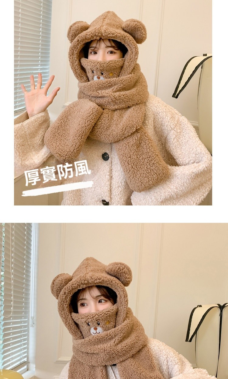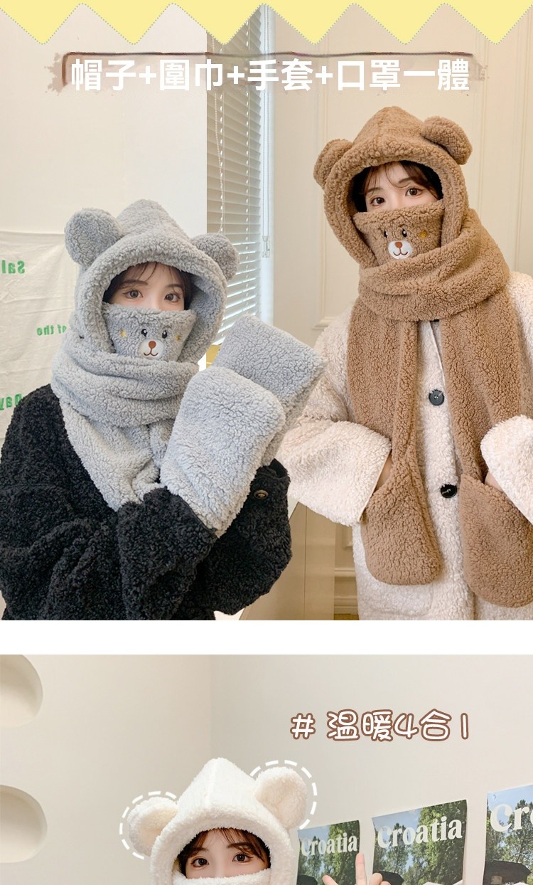【2026小熊四件套】帽+口罩+圍巾+手套一體成型・冬季保暖黑科技・萌孩的冬季戰甲