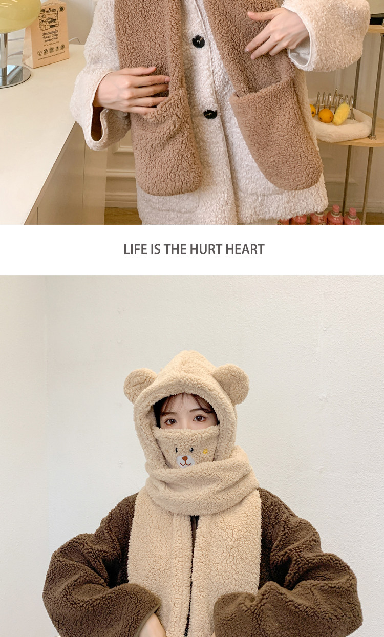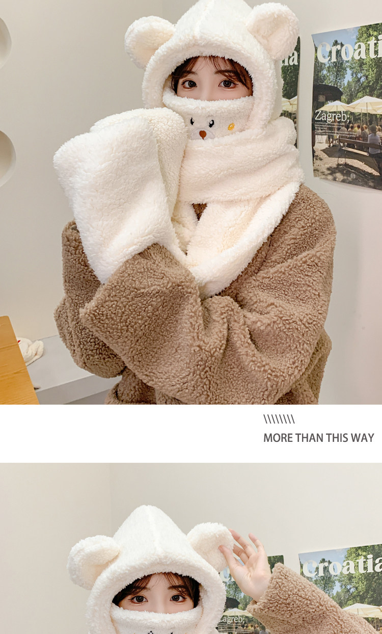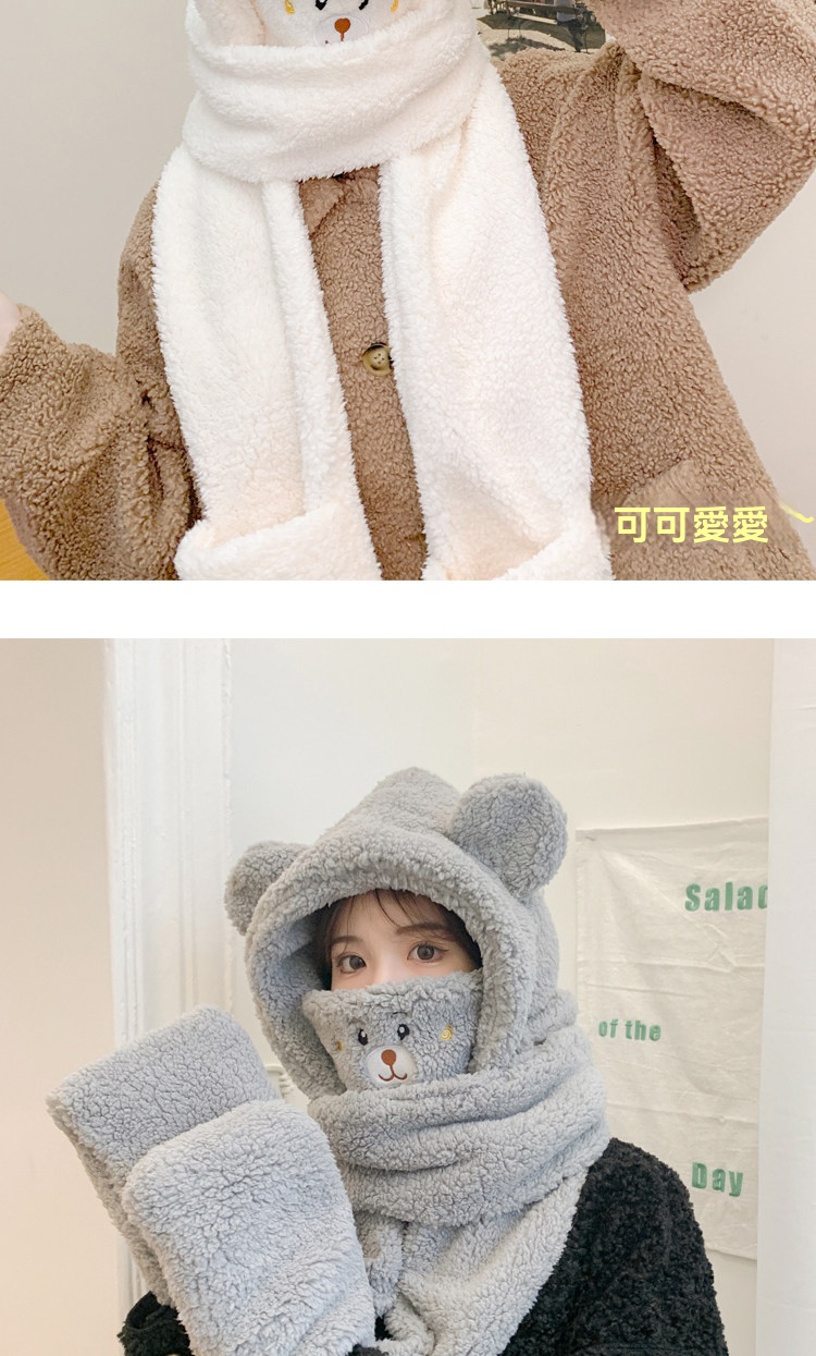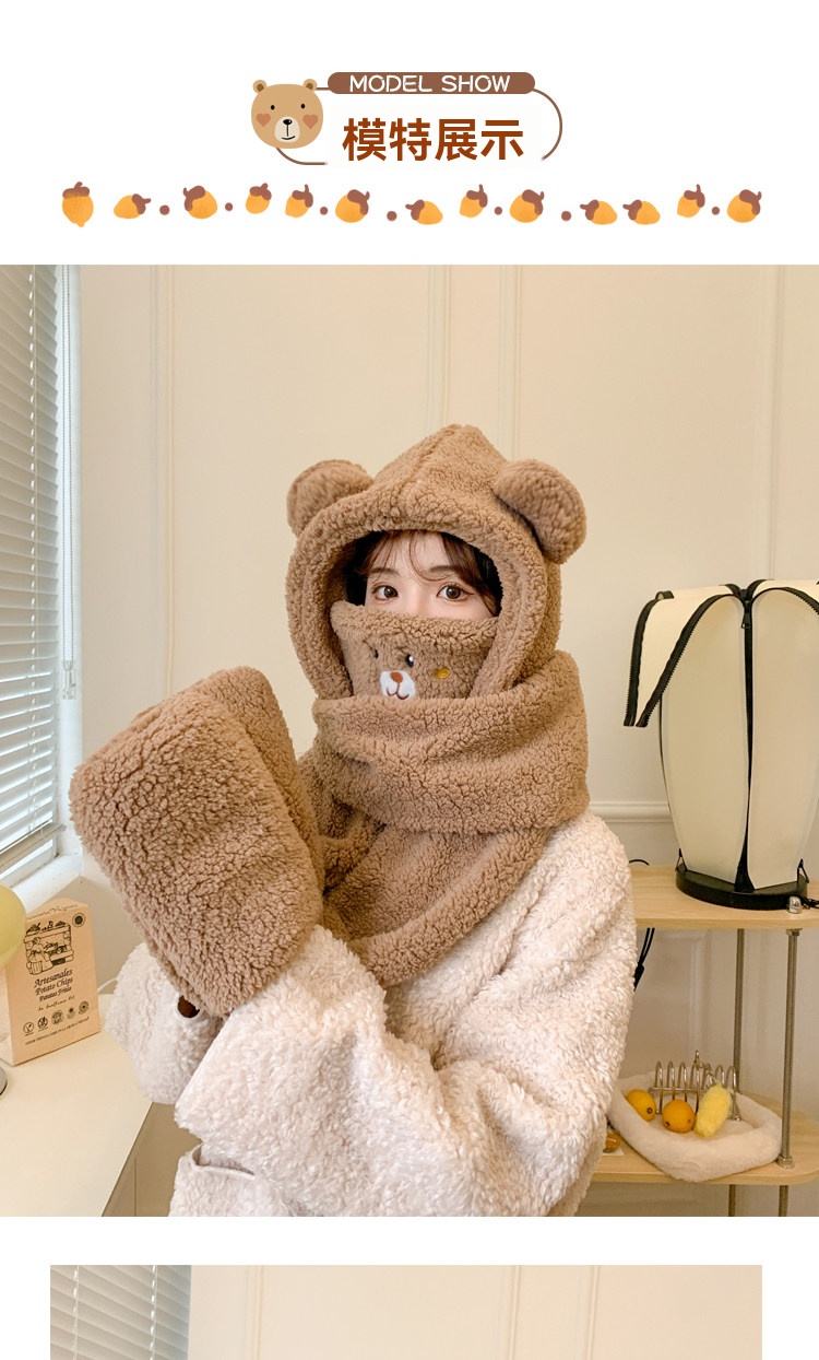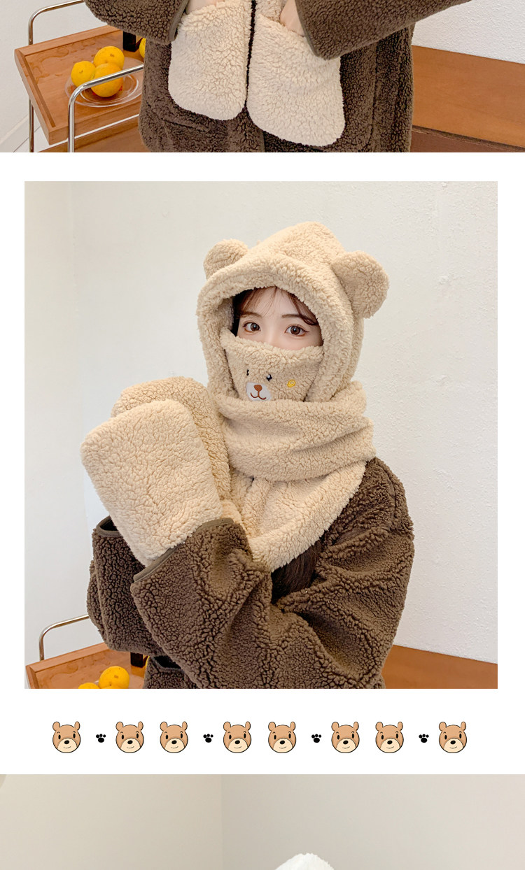 【2026小熊四件套】帽+口罩+圍巾+手套一體成型・冬季保暖黑科技・萌孩的冬季戰甲